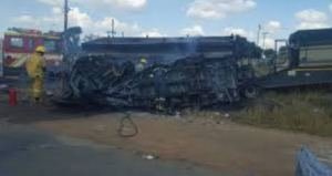 At least 12 primary school children died in a car crash in South Africa on Wednesday. The country’s road transport officials told reporters that a minibus carrying children to school overturned and caught fire after colliding on the N14 highway near Merafong, about 70 kilometres west of Johannesburg. The minibus driver was also found dead. South African authorities said the …