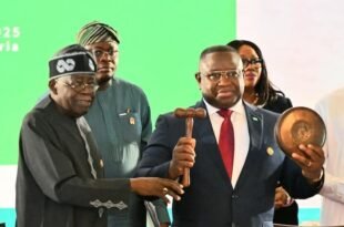 President Bola Tinubu, Sunday in Abuja, delivered the presidency of the Ecowas authority of the heads of state and the government to the president Julius Maada Bio della Sierra Leone, expressing confidence in the continuous path towards peace, stability and prosperity. The 67th ordinary session of the Ecowas authority closed with the symbolic delivery of the emblem on the incoming …