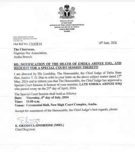 Read More »NBA Asaba mourns Emeka Arinze, special court session to be held on Thursday