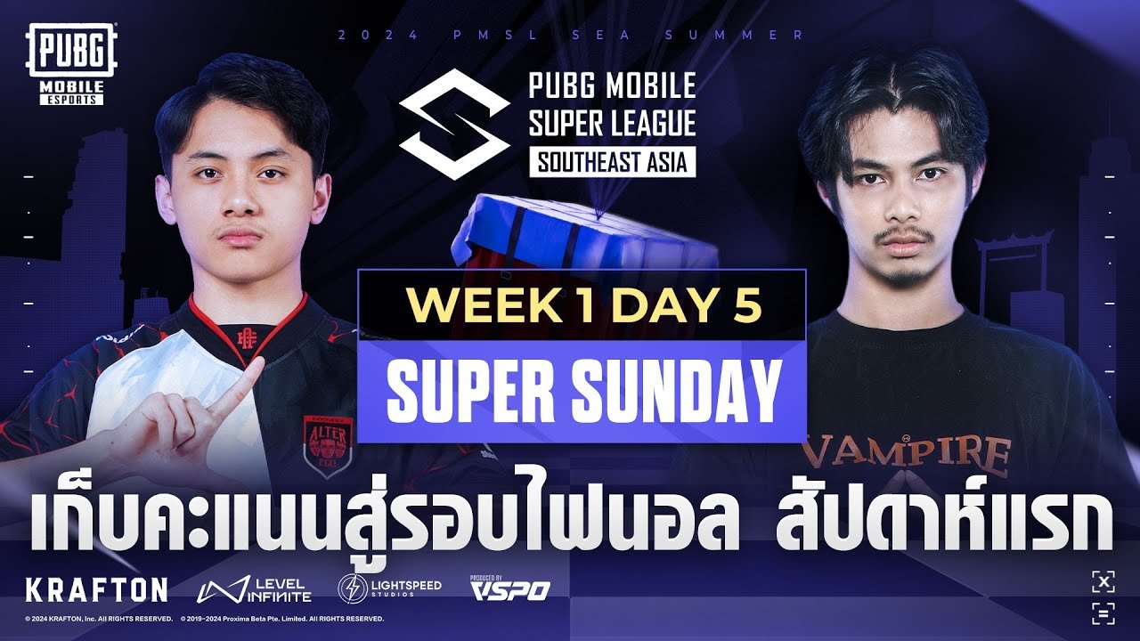 [TH] 2024 PMSL SEA W1D5 | Summer | เก็บคะแนนสู่รอบไฟนอล สัปดาห์แรก 🪂 2024 PUBG Mobile Super League SEA Summer ครั้งแรกในประวัติศาสตร์ PMSL ที่ประเทศไทยได้เป็นเจ้าภาพการแข่งขัน มาร่วมเชียร์ให้ทีมไทยทั้ง 5 ทีม คว้าแชมป์ในบ้านของเรากัน! 💵 ชิงเงินรางวัลรวมกว่า 7,300,000 บาท (200,000 ดอลลาร์สหรัฐฯ) 📻 ถ่ายทอดสด รอบแบ่งกลุ่ม ทุกวันพุธ-อาทิตย์: วันที่ 8-26 พฤษภาคม 2567 รอบสุดท้าย: วันที่ 31 พฤษภาคม-2 มิถุนายน 2567 True5G: Official Telecom Partner Imperial World Samrong: Official Venue Partner Novotel Bangna: Official Accommodation Partner …